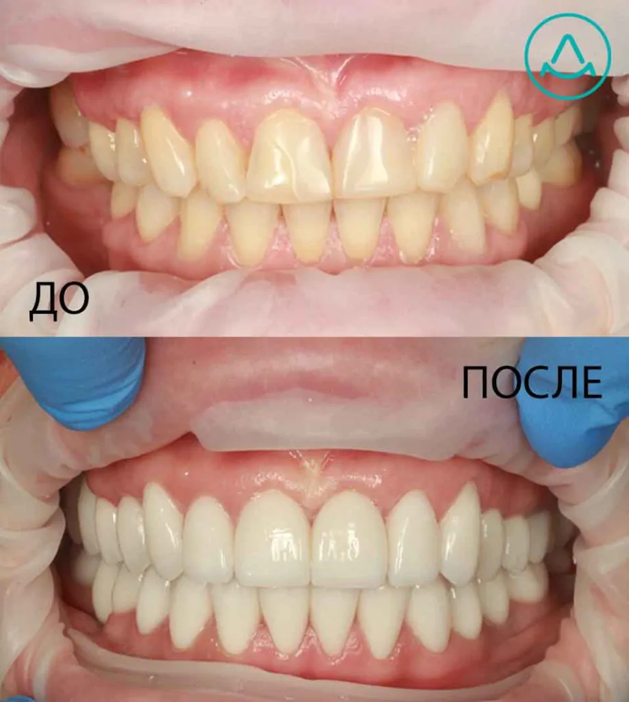 Для решения проблемы с суставом мы провели гнатологическое лечение, определили правильное смыкание челюстей и восстановили окклюзию (смыкание зубов) в необходимом положении с помощью коронок и виниров.