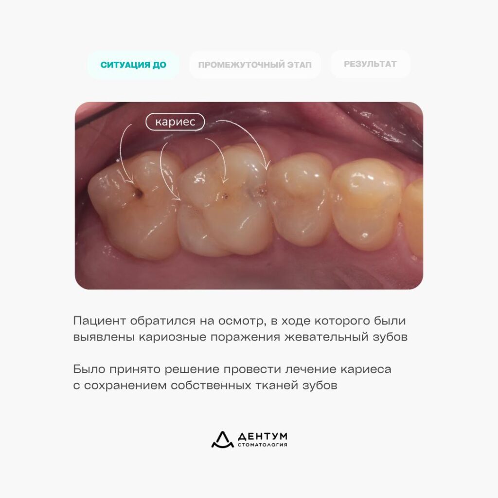 После диагностики было принято решение провести лечение кариеса с сохранением собственных тканей зубов.